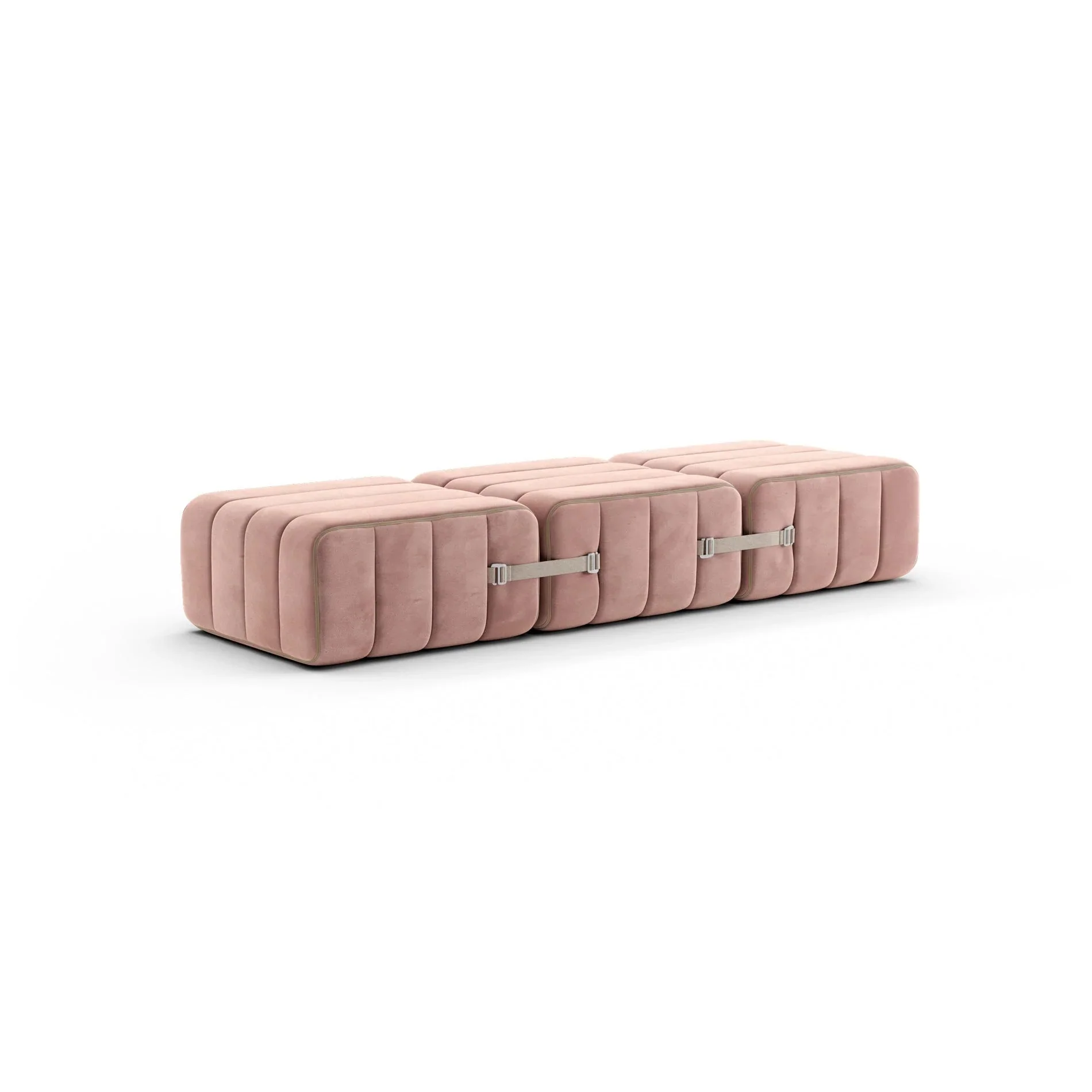 The Curt sofa modules in the color Barcelona Lotus (pink) form a modular, customizable and innovative sofa system, equipped with poufs and belts so that you can design it according to your own wishes. It's a comfortable and flexible way to furnish your living room or office. A little side fact: just four modules of this sofa system are enough to create more than 20 different arrangements. From stools to sofa beds to living room landscapes - it's up to you.