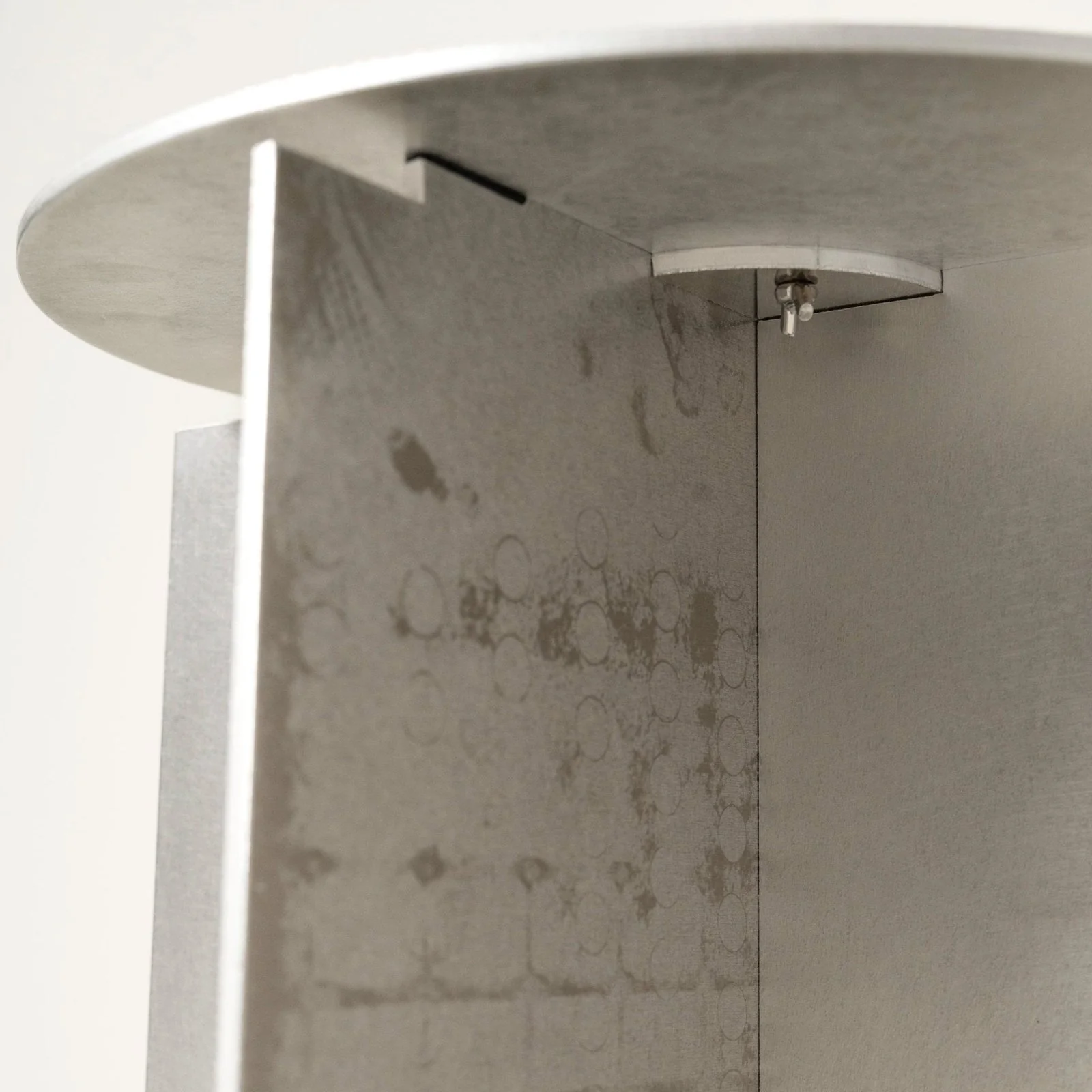 The SOPHIE.STOOL from LOES.BETA.GMBH embodies the best of Berlin design. This versatile designer object serves as both a stool and a side table and makes a statement in any room. Made from 5mm thick natural aluminum, it proudly presents its untreated and unique surface. The conscious decision to show the aluminum in its raw and natural form brings out the beauty of its imperfections. The surface can develop an individual patina over time, emphasizing the natural ageing and character of the aluminium. Each SOPHIE.STOOL thus tells its own story through its individual traces and is therefore truly unique. Perfect for contemporary or industrial interiors, where its raw charm comes into its own.