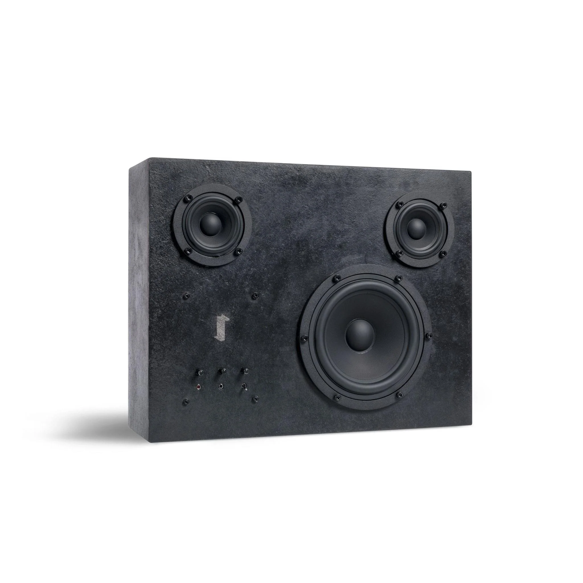 Handmade speaker from Swedish brand Transparent Sound in black from a single piece of recycled steel. Integrated class D active amplifier. Includes long and short 3.5 mm audio cable, USB-C power cable and wall bracket.