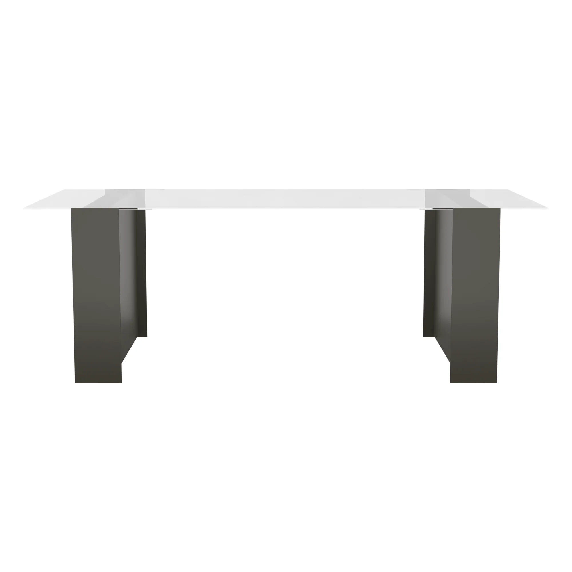 The TANK table is unique in terms of both material and shape. The glass top offers a soft play of color thanks to its transparent surface, which allows the lower aluminum legs to shine through. With its robust materials and solid base, it is designed for years of use.