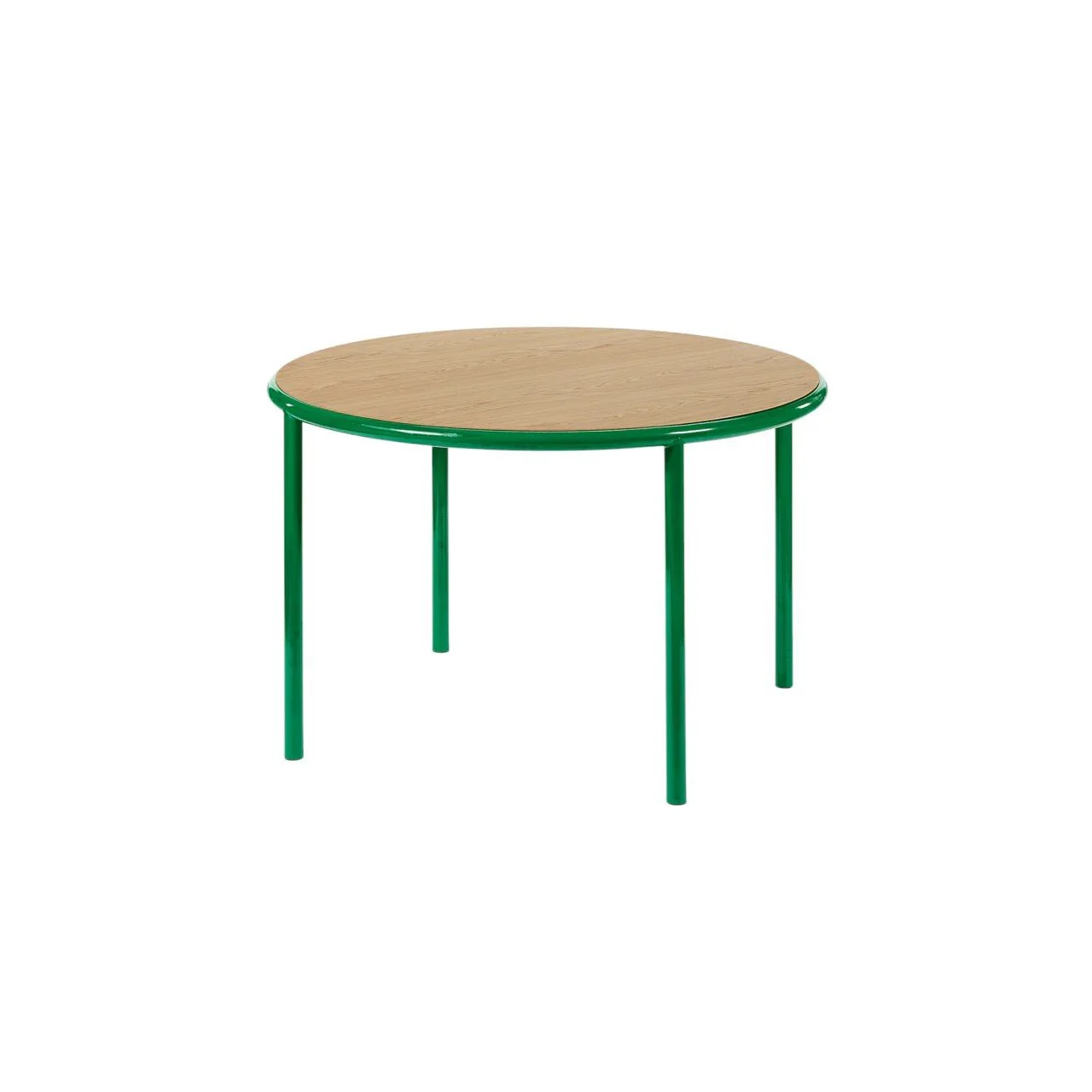 For the fifth anniversary of valerie_objects, Muller Van Severen surprise the world with a creation we thought would never leave their studio: a wooden piece of furniture. It is no secret that Fien Muller and Hannes Van Severen have always put wood aside to let other, less usual materials steal the shine, such as polyethylene, enamel and lacquer. The new items are a nod to the nineties refectory tables still seen in schools. The frame and the legs of the table consist of rounded steel tubes. The wooden top is available in four different wood types: a light birch, a classic oak, a stylish walnut and a darker cherry. Three different shapes are available: a simple round, a refectory-rectangular one and a straight version with rounded corners.